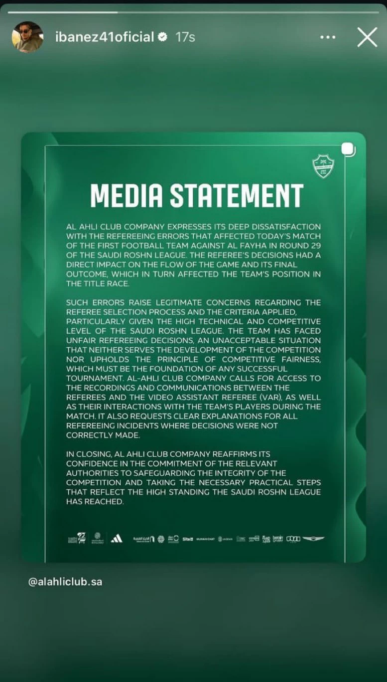 إيبانيز يعيد نشر بيان الأهلي في «الإنستغرام» – أخبار السعودية