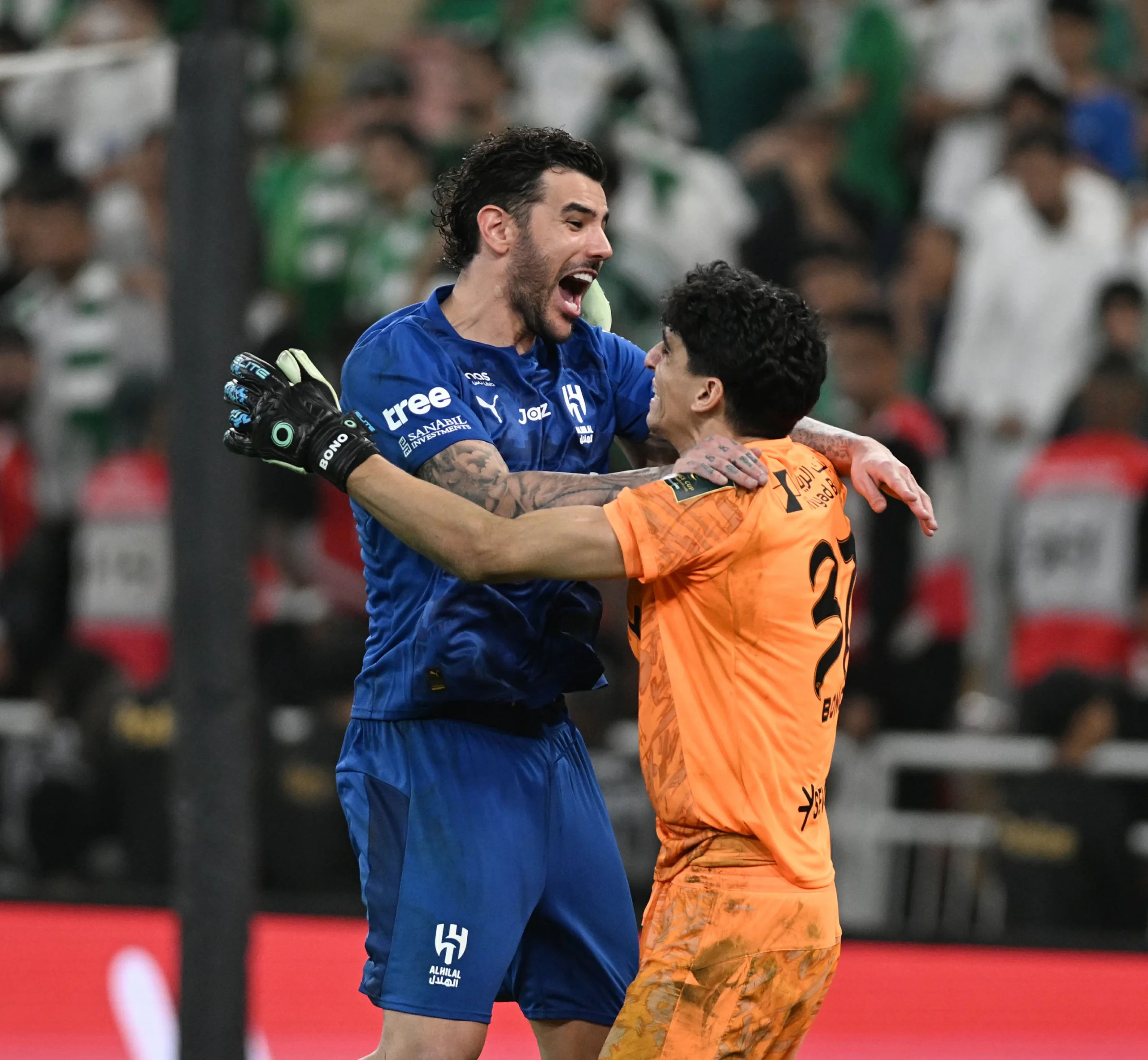 The Moroccan goalkeeper Yassine Bounou led his team Al-Hilal to the final of the most prestigious cup by saving two penalty kicks. The match saw Al-Hilal take the lead first through Théo Hernandez with a powerful shot to the center of the goal (39th minute), and Al-Ahli equalized through their striker Ivan Toney from a penalty kick (81st minute). The score remained unchanged in extra time, leading both teams to a penalty shootout. Al-Hilal managed to score 4 penalty kicks converted by: Ruben Neves, Marcos Leonardo, Sultan Mandash, and Théo Hernandez, while Al-Ahli scored 2 penalty kicks through: Franck Kessié and Ziad Al-Jahani, while both Ivan Toney and Jallinou missed their attempts.