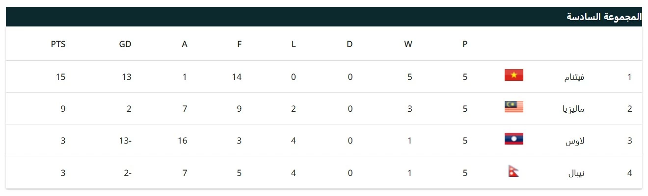 The disciplinary decision issued by the Asian Football Confederation resulted in the matches being converted to losses for Malaysia with a score of 3-0, which placed them six points behind Vietnam, the leader of Group 6, and eliminated any mathematical possibility of qualification, with one match remaining in the qualifiers. The new standings of the group are as follows: Vietnam in first place with 15 points, followed by Malaysia in second with 9 points, and then Laos and Nepal with 3 points each. Vietnam will host Malaysia in a match that is a formality after securing qualification for the finals.
